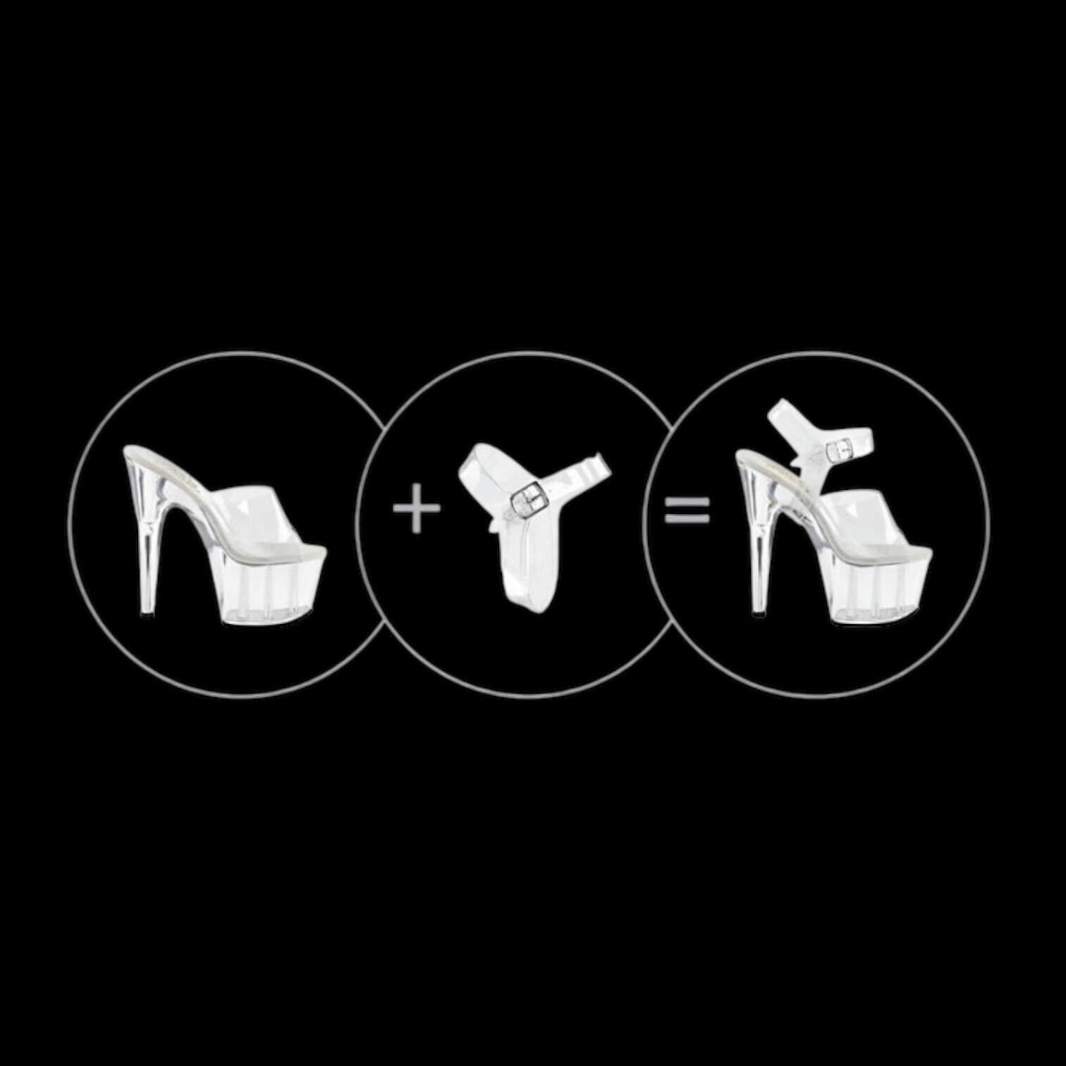 Permet de maintenir votre mule à votre pied. Elles se passent entre le talon et l'avant de la plateforme et fonctionnent ensuite comme une bride classique en maintenant votre cheville.