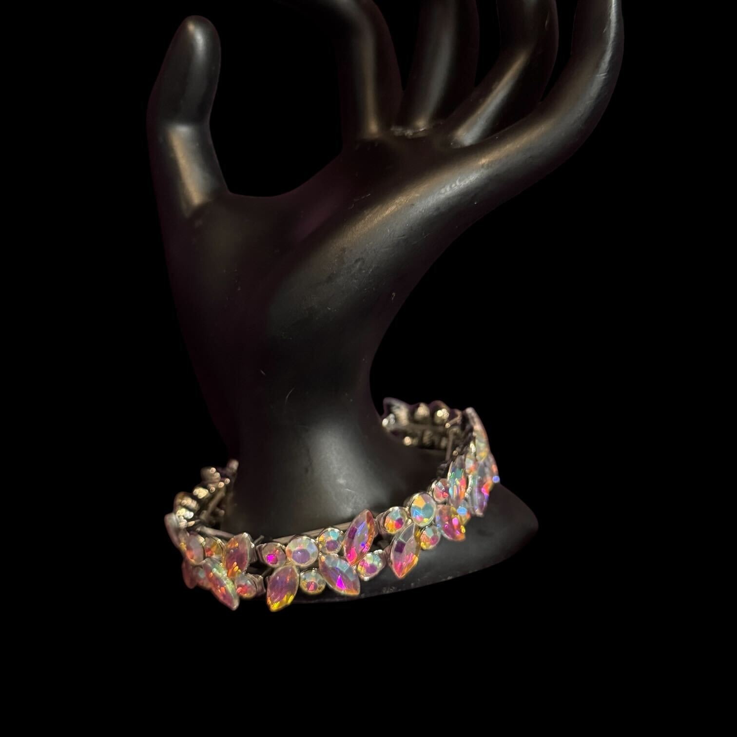 Sur une monture élastique rigide, bracelet en strass Ab multireflets.