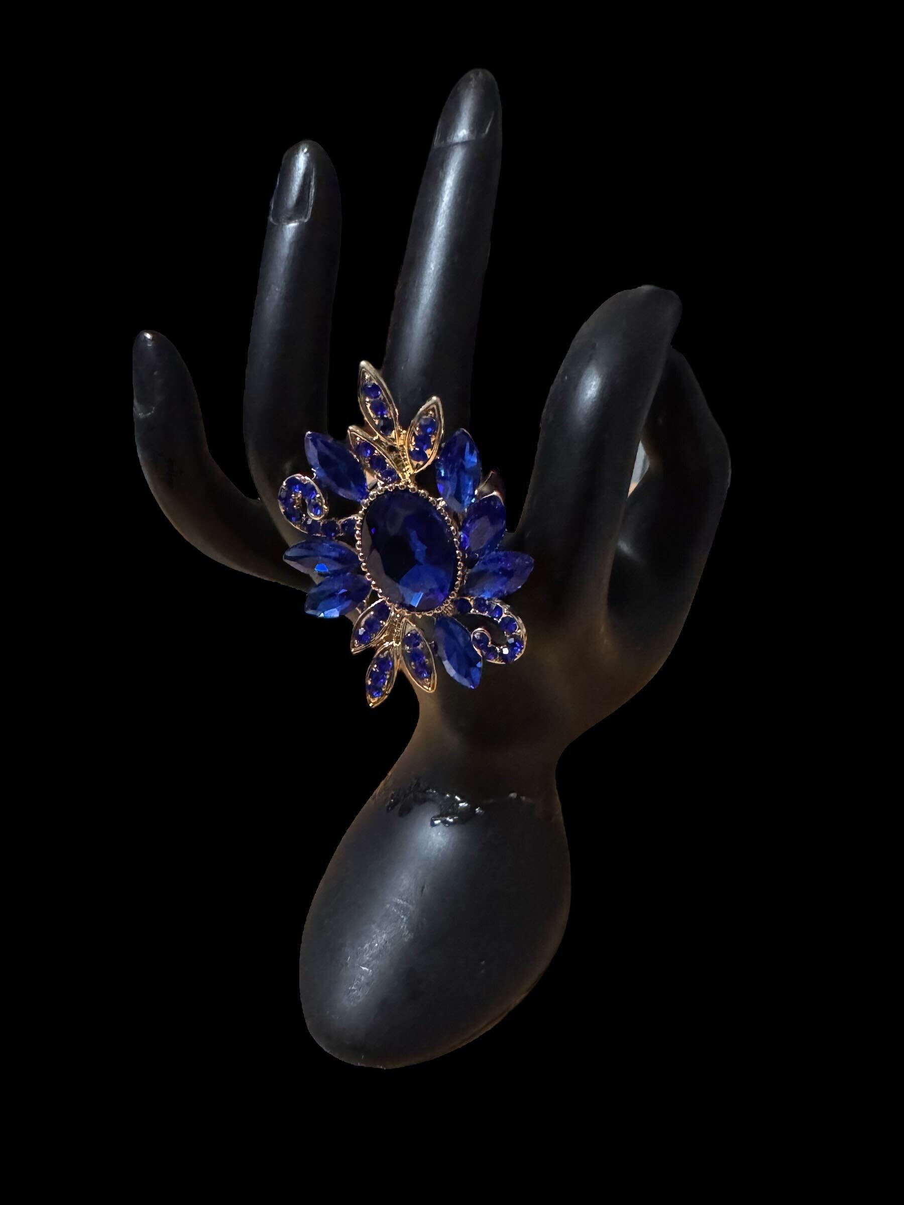 Sur monture élastique or une fleur et ses pétales bleues marines illumineront votre main.