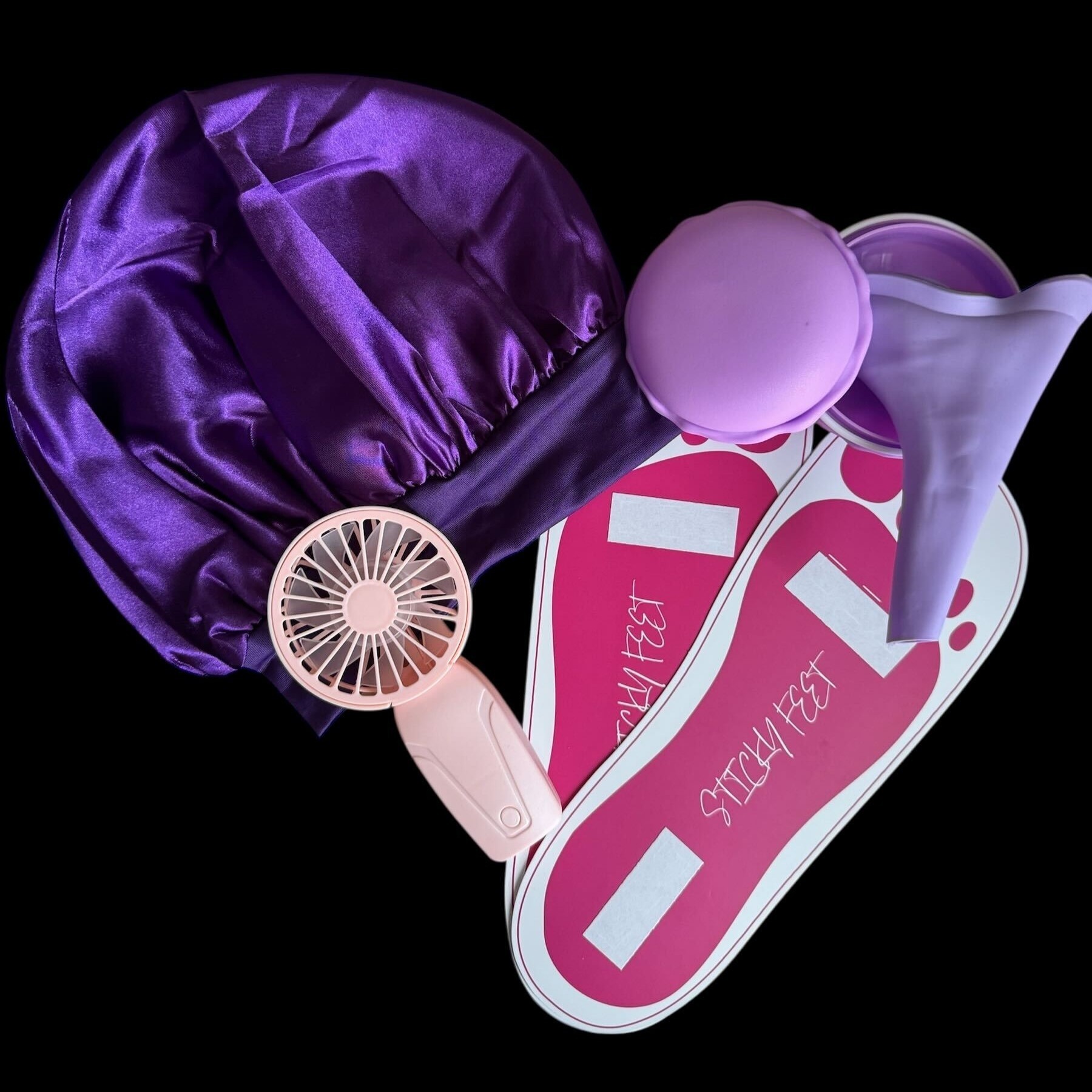 Cependant pour obtenir la perfection, il ne faut pas négliger certains détails, la charlotte pour protéger les cheveux et coiffure( les particules de tan sont volatiles et plaquent les cheveux). Des semelles collantes pour l’hygiène et éviter d’avoir des dessous de pieds noirs et salir vos chaussures, un ventilateur pour sécher votre tan et une urinette pour les projections d’urine qui font des petites traces sur le tan.