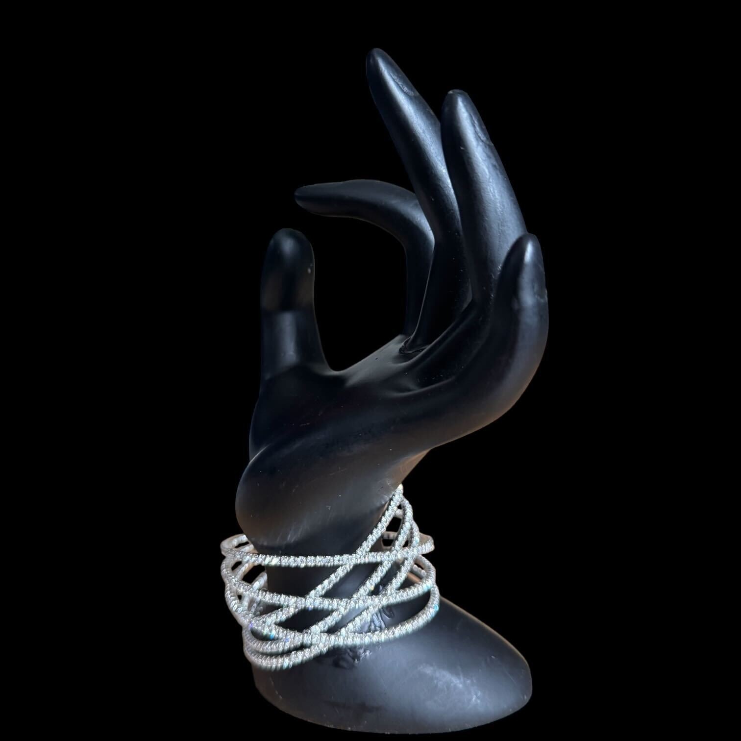 Sur base acier  traité (existe en colori or ou argent) bracelet type jonc de 6 rangs fermeture par clip. Convient aux petits poignets. Très raffinés, élégants et parfaitement accordés à des bikinis aux couleurs sombres comme vives.