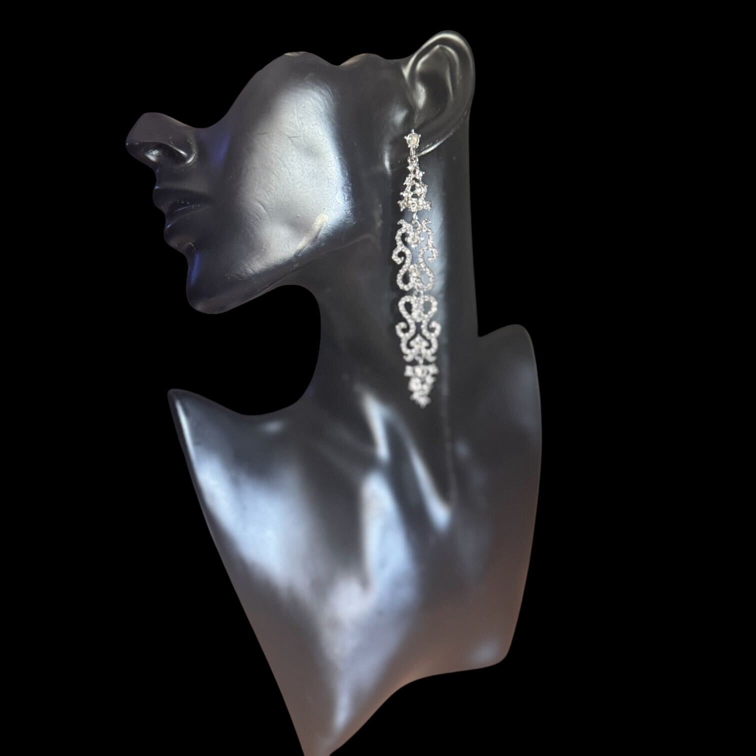 Sur base argentée, arabesque de strass blanc diamant.
